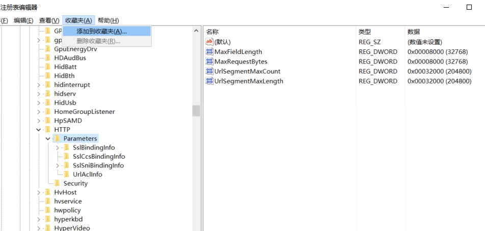 运行regedit,进入 HKEY_LOCAL_MACHINE\System\CurrentControlSet\Services\HTTP\Parameters ,