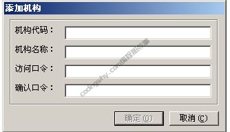 4、在“添加机构”界面,分别输入“机构代码”、“结构名称”、“访问口令”、“确认口令”后单击“确定(o)”。