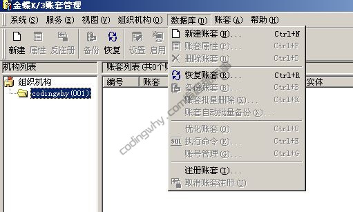 帐套在整个金蝶K3中是非常重要的,他是存放各种数据的载体。帐套本身就是一个数据库。