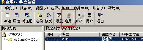 9、帐套添加完成后,默认是不启用该帐套的,你需要手工启用下,单击”启用“按钮