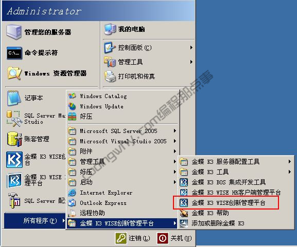 或者依次单击”所有程序“、”金蝶K3 WISE创新管理平台“、”金蝶 K3 WISE创新管理平台“。