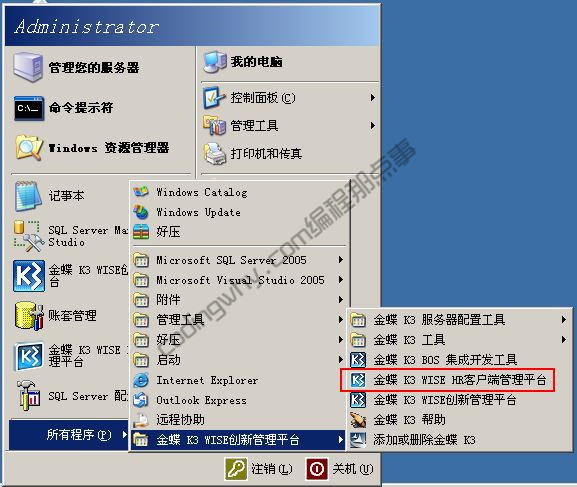 或者依次单击”所有程序“、”金蝶K3 WISE创新管理平台“、”金蝶 K3 WISE HR客户端管理平台“。