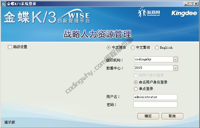 同登录登录金蝶 K3 WISE创新管理平台一样,登录金蝶 K3 WISE HR客户端管理平台的前提也是设置了K3的帐套。