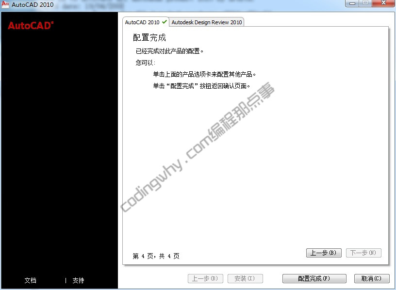 单击“下一步”按钮,进入“AutoDesk Design Review 2010”的配置完成界面,之后单击“配置完成”按钮。