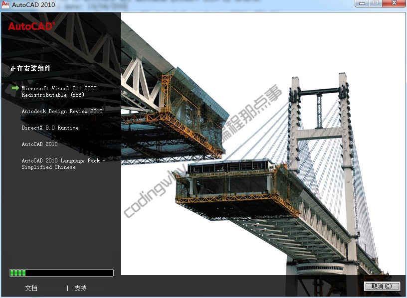 此时,进入安装组件界面,AutoCAD会安装如下组件